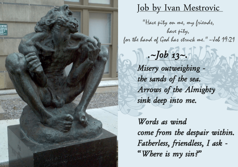 ~ I wrote the above poem years ago. It is based on Job 13. In addition, I put a photo of a sculpture, to wit, Job by Ivan Mestrovic. The sculpture can be seen on the campus of my alma mater, Syracuse University.